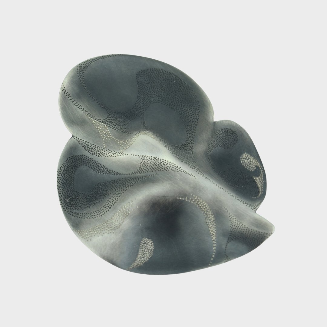 Single-pin brooch inspired by the human body. Made by pressing copper ‘skin’ over hand forged steel formers. Engraved detail.