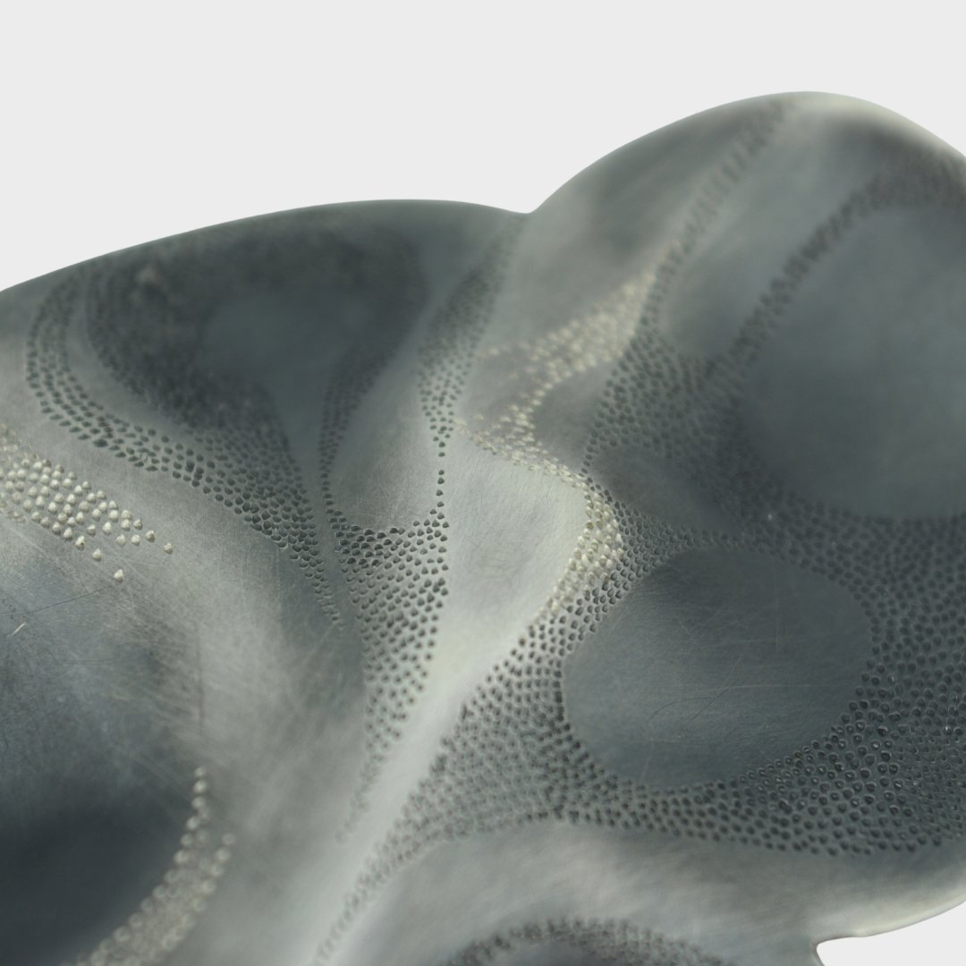Light bounces off the pieces’ complex facets and surface textures, giving the impression of an undulating motion and bringing the material to life.